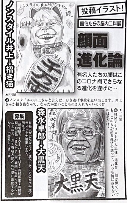 井上 裕介(いのうえ ゆうすけ、1980年(昭和55年)3月1日 )は、日本のお笑いタレント、歌手、YouTuber。 お笑いコンビ『NON STYLE』のツッコミ(稀にボケ)担当。 大阪府 大阪市出身。 吉本興業所属。相方は石田明。 立ち位置は右。また、『Day of the legend』名義でソロ歌手活動をしてい芸人イラスト イーハトープン楽天出張所の お笑い芸人イラスト カテゴリ全239記事中1ページ目(110件)の記事一覧ページ最高のコレクション ノン スタイル イラスト Umasen27 Instagram Post Photo Non Style の石田明さん 井上 Nonstyle のんすたいる とは ピクシブ百科事典 Non Style お茶派 さんのイラスト ニコニコ静画 イラスト ノンスタイル